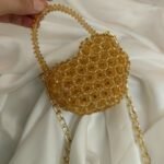 This stylish bag features beautiful plastic beads that add a playful and chic charm. Inside, it is lined with smooth, premium silk potly for a refined and luxurious feel. The metallic chain provides both durability and style, while the beaded strip adds intricate detailing, making this bag perfect for special occasions where you want to make a statement.