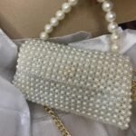 This elegant bag features a beautiful combination of plastic pearls and crystal beads, creating a sophisticated and luxurious look. Inside, it is lined with smooth, premium silk for a soft, refined interior. The magnet button closure ensures easy access and security for your belongings. The metallic chain adds both durability and style, making this bag the perfect accessory for any special occasion.