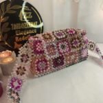 The bag showcases a captivating combination of glass, matte, and metallic materials, creating a bold, chic, and luxurious design that instantly catches the eye and adds a touch of sophistication to any outfit. Inside, the bag is lined with soft, premium Shamoz silk, providing a smooth and elegant finish that protects your essentials while enhancing the overall luxurious feel. It features a convenient magnet button closure, ensuring secure fastening while allowing easy and effortless access to your belongings. The design is further accentuated with a stylish beaded long strip, which adds a glamorous and refined touch, making the bag a statement accessory for any occasion. Compact yet thoughtfully spacious, it comfortably holds your phone, wallet, keys, small makeup essentials, and other daily necessities, seamlessly blending practicality with elegance. Versatile and fashionable, this bag is perfect for both casual outings and formal events, effortlessly elevating any ensemble while reflecting a timeless sense of style and glamour.