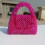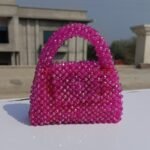 This luxurious bag features a beautiful glass crystal design that adds sophistication and elegance. Inside, it is lined with smooth, premium silk for a soft and refined interior. The magnet button closure ensures easy access and security, while the metallic chain adds both durability and style. The beaded handle offers intricate detailing, making this bag the perfect accessory for any special occasion.