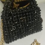 This chic bag showcases a sleek matte crystal design, providing a modern and sophisticated aesthetic. Inside, it is lined with smooth, luxurious silk for a premium, soft feel. The magnet button closure ensures easy access while keeping your belongings secure. The metallic chain adds both durability and style, while the beaded handle adds intricate detailing, making this bag a perfect accessory for any special occasion.