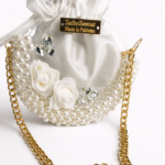 The Pearls Round Sheet Bag is a graceful and stylish accessory designed in a classic round shape. Adorned with beautiful plastic pearls and built on a strong acrylic sheet base, this bag offers both elegance and durability. It features a soft silk potli inner lining, a sleek metallic chain strap, and a decorative beaded strip that enhances its overall charm. Perfect for weddings, parties, and festive events, this bag adds a sophisticated touch to any outfit.